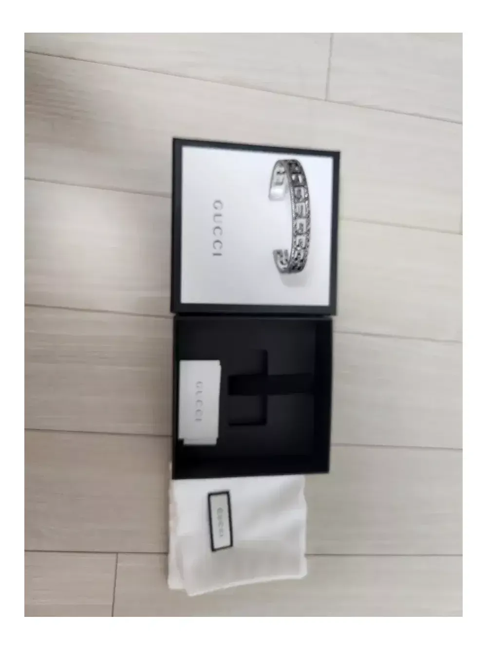 구찌 G 모티프 스퀘어 브레이슬릿 실버 넓은버전입니다. 현재 단종모델로 구하기 어려운모델입니다. 사이즈는 17사이즈로 남성 평균사이즈입니다. 사용감없는 새상품이며 정품아닐시 100프로 환불드립니다. (번개케어로 정품인증 받고 구매하셔도 됩니다) 택배비 별도 3200원입니다.