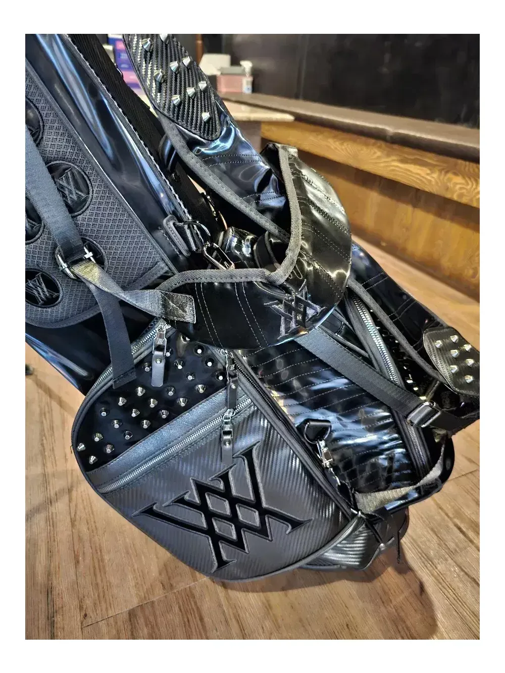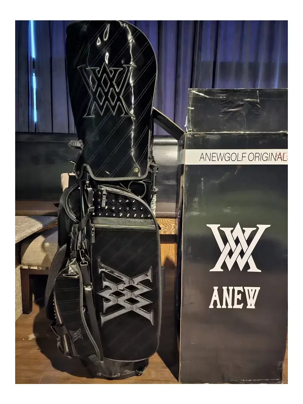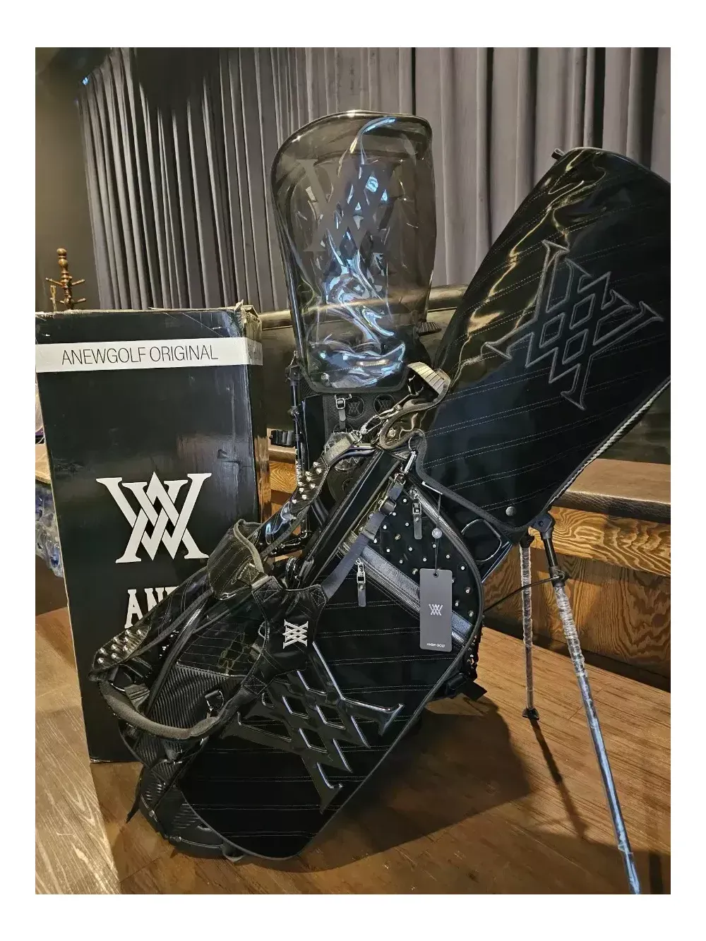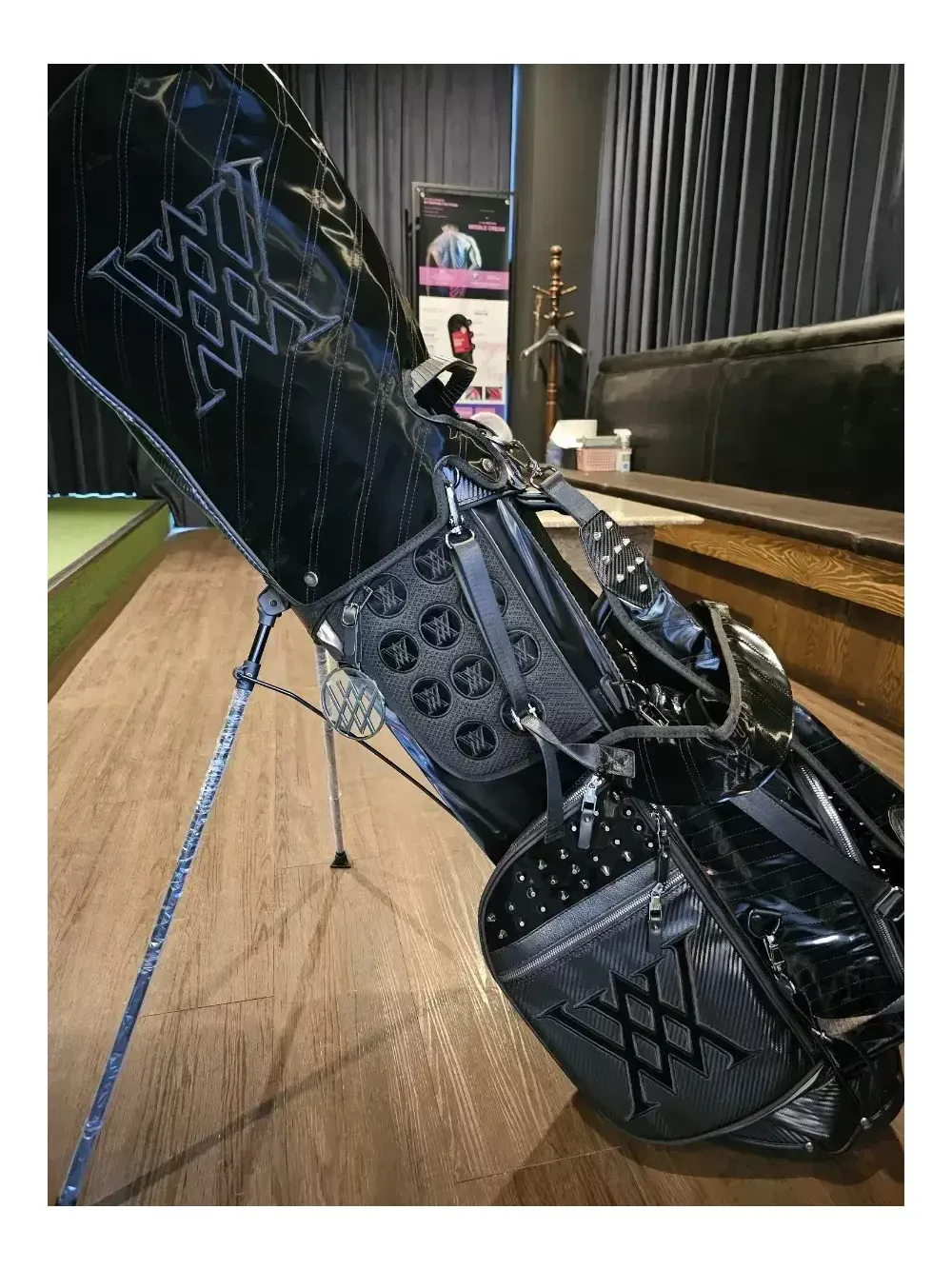 어뉴 한정판 블랙에디션 스탠드 골프백 일본정품.병행수입. 새상품. 남여공용 오프라인매장, 로드매장 등에 전시했던 진열삼품으로, 철저한 관리로 새상품과 다르지 않습니다. 어뉴공홈에서는 판매가 99만8천으로 최고가백이었지만, 최근 품절되어 구매가 어렵습니다. 안전결제하시면 정품박싱 그대로 드립니다. 통상 오후2시 이전에 결제하시면 1~2일이면 받아보실 수 있습니다. 블랙에디션 샤이닝 라인은 벨벳이 아닌 수입특수원단으로 스크레치, 기스 등에 강하며 습기에도 탁월합니다. 또한, 모델명 그대로 빛을 받으면 반짝반짝 트윙클하고 빛나는 효과가 고급스러워 어디에서도 눈에 확 띕니다. 중량은 6kg대이며, 아주 튼튼하고 렉은 부드럽습니다. 본품 외에 후드커버, 투명후드커버, X자 어깨끈, 일자 어깨끈, 아크릴 네임텍 이 있습니다.