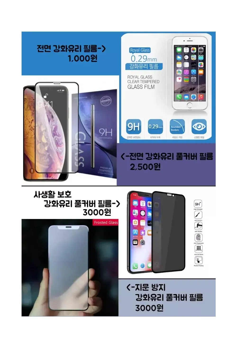 ?배송비 변경 및 기타 문의사항은 채팅 부탁드립니다? ■사생활 보호 풀커버 강화유리 필름■ - 3,000원 ■지문방지+사생활 보호 듀얼 풀커버 강화유리 필름■ - 5,000원 두꺼운 강화유리의 3D 곡률과.. 저반사 및 고급코팅마감으로.. 이 가격대 만나볼 수 없는 품질입니다. 신제품 출시 기념 저렴하게 공급합니다. ✔️배송비 (우편 900~원 준등기 2000원 파손/분실 보상X) ■■필름류는 파손으로 택배배송만 가능■■ GS25반값택배 2100원 일반택배 3000원(제주산간+3) ?1만원 이상 *첫*구매 시 GS반값택배 ●1500원● ?1만원 이상 *재*구매 시 GS반값택배 ●1800원● ?1만원 이상 구매 시 *우편* 무료배송 [ 유리필름 배송 불가X] ?3만원 이상 구매 시 *일반택배* 무료배송 ■추가 선택 상품■ ⬇️ㅡㅡㅡㅡ휴대폰케이스ㅡㅡㅡ⬇️ 0.변색없는 3D 크리스탈 하드케이스(3900원)● M1. 매머드 맥세이프 케이스(4500원)●(변색방지) 1.불사 매머드 케이스(1800원)● 2.불사 매머드 카드케이스(2900원)●(변색방지) 3.불사 매머드 하드케이스(3900원)●(변색방지) 4.불사 카메라 풀커버 케이스(3500원)●(변색방지) ⬇️ㅡㅡㅡㅡ전면 필름ㅡㅡㅡㅡ⬇️ 5.방탄 강화유리필름/우레탄필름(1000원) 6.방탄 강화유리 풀커버필름(아이폰)(2500원) 6.방탄 강화유리 풀커버필름(갤럭시)(3000~4000원) ⬇️ㅡㅡㅡㅡ다기능 전면 필름ㅡㅡㅡㅡ⬇️ 6-1.*사생활 보호* 방탄 강화유리 풀커버 필름(아이폰)(3000원) 6-2.*지문방지* 방탄 강화유리 풀커버 필름(아이폰)(3000원) 6-2.*지문방지* 우레탄 풀커버 필름(갤럭시)(3000원) ⬇️ㅡㅡㅡㅡ카메라필름/후면필름ㅡㅡㅡㅡ⬇️ 7.강화유리 카메라 보호필름(1900원) 8.아이폰11~14 시리즈 풀커버형 카메라보호필름(2500원) 9.갤럭시/아이폰 후면 기스방지 우레탄 필름 (1000원) 10.아이폰 후면 강화유리필름(2500원) 11.아이폰12~14 시리즈 후면/측면 기스방지필름(2000원/1500원) ⬇️ㅡㅡㅡㅡ기타 악세사리/충전ㅡㅡㅡㅡ⬇️ 12.아이폰 홈버튼 필름(1000원) 13.에어팟 실리콘 케이스/18K철가루방지 스티커(1500원) 14.10W 8핀/C타입 고속충전케이블(2000원) 15.10.5W 8핀/C타입 고속충전기(3900원) 16.3in1 고속충전 케이블(3900원) 17.8핀/C타입 이어폰 변환 젠더(3900원) 18.충전 케이블 변환젠더(500원) 19.스마트톡(1300원) ⬇️ㅡㅡㅡㅡ아이패드/애플워치ㅡㅡㅡㅡ⬇️ A.아이패드 투명 범퍼 젤리 케이스 (5000~6000원) B.아이패드 전면 강화유리 필름 (6000~7000원) C.애플워치 투명 풀커버 강화유리 케이스(3000원) D.애플워치 풀커버 액정보호필름(2500원) ●모든 상품들은 상점에 상품상세글, 상세사진이 따로 있습니다.● ●교환 환불 규정 -우편, 준등기로 배송된 제품에 대해서는 분실/파손시 어떠한 보상도 불가합니다. -우편, 준등기로 배송된 제품은 단순변심환불이 절대 불가합니다. -우편, 준등기로 거래시 번개송금, 빠른송금, 가상계좌입금, 번개페이 등 번개장터앱 내에서의 송금은 일체 불가합니다. -단순변심/불량 발견시 미사용상태로만 교환환불 가능합니다. -자잘한 하자, 단순 기스는 불량사유가 아닙니다. 공정,운반중에 자연스레 발생하는 현상이며, 노마진 판매인만큼 자잘한 하자로는 AS가 불가합니다. 민감하신분들은 구매 자제부탁드립니다. -판매자와의 상의없는 번개페이/송금은 자동취소되며 발생한 수수료에 대해서는 어떠한 책임도 지지않습니다. -입금후 환불은 상점 교환환불정책에따라 진행됩니다.